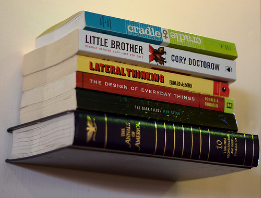 the hang of DIY, and since the drilled holes and nails are hidden by the books